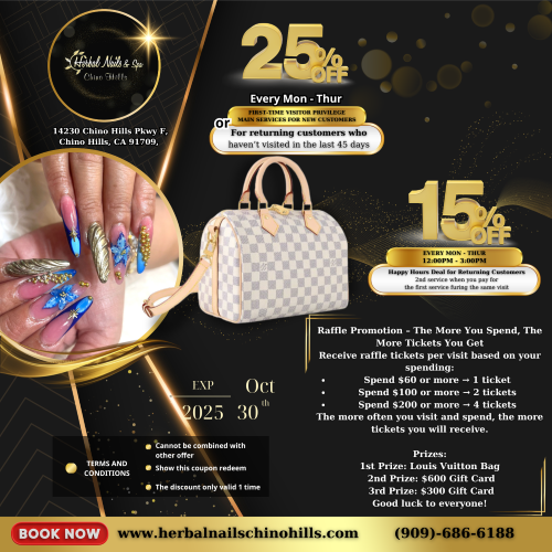 Herbal Nails & Spa - Chino Hills is a top-notch nail salon and spa in Chino Hills, CA 91709. We are the ideal destination for you to immerse yourself in a luxury environment.
